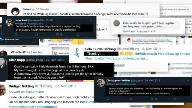 Die SBK ist mit einem Bewertungsschnitt von 1,4 auf Jameda die bestbewertete gesetzliche Krankenkasse. Ideale Voraussetzungen, um die Aufmerksamkeit der Öffentlichkeit auf die negativen Kundenbewertungen zu lenken. Ganz nach dem Motto: #KritikistMusik